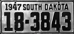- ^ a b c Tanner, Eric N. "South Dakota Passenger License Plates". allaboutlicenseplates.com. Retrieved November 11, 2020.