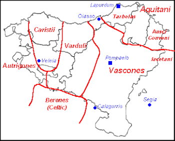 Location of Veleia and other Roman cities in the context of ancient Basque tribes and the modern Basque Country