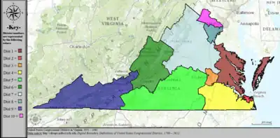 Table of United States congressional district boundary maps in the State of Virginia, are presented chronologically below for the most recent iterations following the redistricting of the 1960s, after the U.S. Supreme Court ruled that congressional and state legislative districts had to satisfy the one man, one vote criteria for equal representation. The state legislature had long delayed redistricting, leading to outsize influence by rural districts and under-representation of urban areas.[5] All redistricting events that took place in Virginia between 1973 and 2013 are shown.