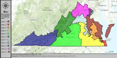 Virginia pre-2016 congressional districts were ranked the 5th worst in the country by one analysis[6] because counties and cities were broken into multiple pieces to create heavily partisan districts.[7]