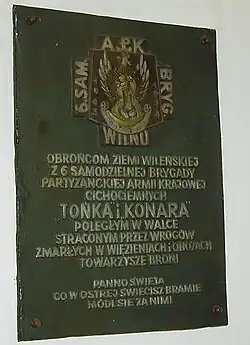 A commemorative plaque for the 6th Wilno Brigade, led for a time by Władysław Łukasiuk