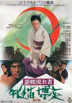 Wandering Ginza Butterfly 2: She-Cat Gambler (Japanese: 銀蝶流れ者 牝猫博奕, Hepburn: Ginchō Nagaremono: Mesuneko Bakuchi) is a 1972 Japanese film, which is a sequel to Wandering Ginza Butterfly. The film was directed by Kazuhiko Yamaguchi, who co-wrote it with Isao Matsumoto. The film stars Meiko Kaji and Sonny Chiba.[1][2]