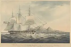 Warren Hastings (1808), - lying to off the Island Ascension, 22 May 1823 - dedicated to Captain George Mason by his Officers
