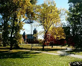 At the westernmost end of Waverley Park is the former Port Arthur Collegiate Institute, which was the oldest high school west of Toronto, Ontario. The large castle-like edifice was constructed in 1909-10 of Simpson Island sandstone, and incorporated medieval and Flemish architectural features. Being located on a hill, it has a very imposing nature when viewed from the park below. Its site was chosen by Montreal landscape architect Frederick Todd, and its architects were Young and Simpson of Toronto.[2]