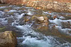 The drainage basin of West Branch Fishing Creek is designated as a High-Quality Coldwater Fishery and a Migratory Fishery, except for the drainage basins of the tributaries Shingle Mill Run and Elk Run, which are designated as Exceptional Value waters and Migratory Fisheries.[14] Wild trout naturally reproduce in the creek. However, dry stream beds often prevent wild brook trout from migrating up the creek.[1] Nevertheless, the creek has the highest population of wild brook trout of any major stream in the upper Fishing Creek watershed.[1] In an electrofishing survey done by the Fishing Creek Sportsman Association, 17 sculpin, 11 wild brook trout, 7 escaped (and unidentified) trout, 6 hatchery brown trout, and 1 hatchery brook trout were observed on the creek.[1] The creek is designated by the Pennsylvania Fish and Boat Commission as Class A Wild Trout Waters from its source to the tributary Hemlock Run, a distance of 2.50 miles (4.02 km).[5]
