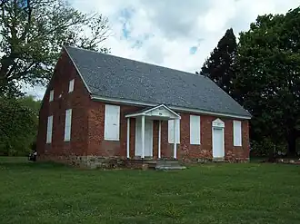 The West Nottingham Meetinghouse, or Little Brick Meetinghouse, is a historic Friends meeting house located at Rising Sun, Cecil County, Maryland, United States. It is a brick one-story building built in 1811, rectangularly shaped, and measuring 45 feet, 4 inches by 30 feet.[2] Also on the property is a graveyard.[2] The structure features two entrances, one for women and one for men, and sliding panels to divide the interior space in half, as well as the raised "Elder's Benches."[3]