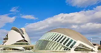 Additional filming took place over a ten-day period in Singapore around July 2019, which was used to present a version of Los Angeles about 40 years out from the time of the production of the show. Showrunners Jonathan Nolan and Lisa Joy had considered how they would introduce the "real world" outside of the park in the early days of developing Westworld. They wanted to go in the opposite dystopian direction that the 1982 film Blade Runner had gone and instead show a more optimistic view.[26] The two had seen how Spike Jonze had filmed Her in Shanghai as a future Los Angeles, and took inspiration from many of Shanghai's designs.[27] Joy, who had been suggested to shoot in Singapore by her friend and architect Bjarke Ingels, said the city was apt for the show as "It's the ways in which nature entangle with modernity here".[28] The show's main cast, including Wood, Newton, Wright, and Paul had been spotted at several Singapore locations during the shooting period across Pulau Ubin, Chinatown and the Central Business District (CBD) within the city, and included specific landmarks such as the National Gallery Singapore, Esplanade Park, School of the Arts, the Helix Bridge, Marina One, the Parkroyal Hotel, LASALLE College of the Arts, and the Oasia Hotel Downtown.[28] Additional filming took place at the City of Arts and Sciences in Valencia, Spain.[27]