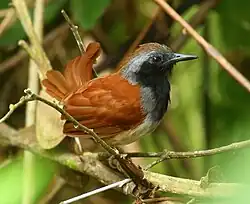 - ^ Isler, M.L.; Bravo, G.A.; Brumfield, R.T. (2013). "Taxonomic revision of Myrmeciza (Aves: Passeriformes: Thamnophilidae) into 12 genera based on phylogenetic, morphological, behavioral, and ecological data" (PDF). Zootaxa. 3717 (4): 469–497. doi:10.11646/zootaxa.3717.4.3. PMID 26176119.