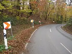 Kreisstraße 79 near the Wiehen Tower at the Egge water gap (autumn 2008); built during RAD emergency work (1924–1927); looking north