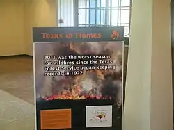 Texas was particularly hard-hit by wildfires in 2011, as noted by this placard at the state Forestry Museum in Lufkin.