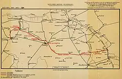 In spite of the non-committal character of the law, the government started to delimit the future course of the canal in July 1906.[20] Soon after, 500,000 guilders for the canal were added to the 1907 budget. By May 1907 a detailed map of the section in Tilburg was published.[21] In these years a lot of time and money was spent on buying, and where necessary disappropriation, of grounds for the canal. In November 1908 the disappropriation law for the canal was treated in the House of Representatives. Overall construction was slow. In 1911 there was a budget of 750,000 guilders. Of this sum 600,000 was spent on disappropriation, and only 75,000 were spent on construction. It led to another heated debate in The Hague.[22]