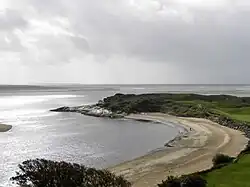 In 1800, the British government and the Irish government both passed Acts of Parliament which created the United Kingdom of Great Britain and Ireland. The Union with Ireland meant that there was a need for improved communication between the two countries, and Madocks was in favour of a route which crossed his estate, to reach Porthdinllaen, on the northern coast of the Llŷn Peninsula, which would provide the terminus for a ferry to Dublin. However, this route involved a crossing of the dangerous Traeth Mawr sands, near the mouth of the Afon Glaslyn, or a lengthy detour to the north to cross the river at the Aberglaslyn bridge. The alternative ferry route from Anglesey involved crossings of the River Conwy and the Menai Strait, bridges over both of which had not yet been built.[12] Madocks therefore, emboldened by the success of his first embankment, revived a plan first proposed in 1625 by Sir Hugh Myddleton, and reconsidered in 1718 and 1770, for a more substantial stone-filled embankment across the mouth of the river Glaslyn. This would enclose some further 6,000 acres (24 km2) whilst providing safe passage across the estuary.[10]