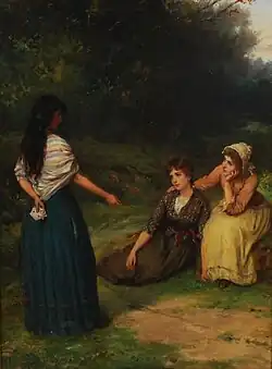 The fortune teller. Oil on canvas. Signed W. Oliver and dated 1886.