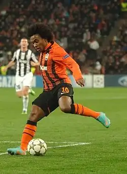 The following season, Willian played the full 90 minutes in the Super Cup match against Dynamo Kyiv on 5 July; however, Shakhtar lost the match 3–1.[25] On 19 October, he scored the opening goal in a 2–2 draw with Zenit Saint Petersburg in the Champions League.[26] He scored the second goal in a 2–1 win over Illichivets Mariupol on 10 March.[27] On 6 May, he played the full match in a 2–1 extra-time victory against Metalurh Donetsk in the Ukrainian Cup Final.[28] He finished the season with six goals—five in the league—from 37 appearances, 27 of which came in the league. Shakhtar secured the Ukrainian Premier League title for the third year in a row and the Ukrainian Cup title for a second consecutive season.[29]