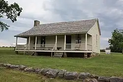 The Ray House, which is still preserved on the battlefield, dates to before the Civil War, and was used as a field hospital following the battle. General Lyon's body was brought to the Ray House by Confederate soldiers after the Union army retreated from the field. The house is open for tours during limited hours over the summer.[21] The tour loop also includes a stop at Bloody Hill, the site of heavy fighting during the battle, as well as the site of Lyon's death. The site of Lyon's death is marked with a monument, which was dedicated in 1928. Several cannons are also on display at Bloody Hill.[22]