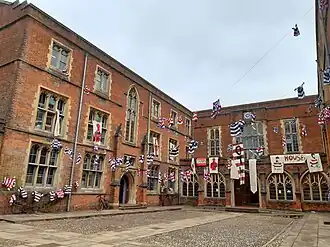 Flint Court on Winkies Day: the classroom buildings are decked out with Commoners and Old Tutor's Houses zephyrs.