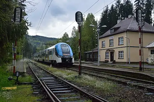 Wisła Głębce railway station is a railway station in Wisła, Poland. Opened on 11 September 1933, it is the terminus of the Goleszów-Wisła Głębce Line. The waiting room and ticket offices were closed in February 2010.[1]