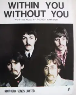 "Within You Without You" is a song by the English rock band the Beatles from their 1967 album Sgt. Pepper's Lonely Hearts Club Band. Written by lead guitarist George Harrison, it was his second composition in the Indian classical style, after "Love You To", and inspired by his stay in India in late 1966 with his mentor and sitar teacher Ravi Shankar. Recorded in London without the other Beatles, it features Indian instrumentation such as sitar, tambura, dilruba and tabla, and was performed by Harrison and members of the Asian Music Circle. The recording marked a significant departure from the Beatles' previous work; musically, it evokes the Indian devotional tradition, while the overtly spiritual quality of the lyrics reflects Harrison's absorption in Hindu philosophy and the teachings of the Vedas.