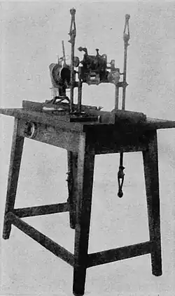 Woodville Latham was the father of Grey Latham and Otway Latham, owners of a kinetoscope parlor in New York City. In December 1894 Latham and his two sons formed the Lambda Company at 35 Frankfort Street, employing Eugène Lauste, a former Thomas Edison employee, as well as motion picture pioneer William Kennedy Dickson. Dickson would not leave Edison's employ until April 1895 and initially lent his expertise to the Lathams in secret. The Eidoloscope was demonstrated for members of the press on April 21, 1895, and opened to the paying public on May 20,[1][2] in a lower Broadway store with films of the Griffo-Barnett prize boxing fight, taken from Madison Square Garden's roof on May 4.[3]