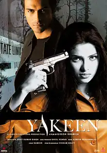 Yakeen (Translation: Trust) is a 2005 Indian Hindi language romantic mystery thriller film directed by Girish Dhamija, starring Arjun Rampal, and Priyanka Chopra while Kim Sharma, Sudhanshu Pandey, and Saurabh Shukla are featured in supporting roles. The film's screenplay was written by Vikram Bhatt.[1] The film's plot is loosely inspired by the 1991 American film Shattered.[2] The film's premise centres around a man who recovers from an accident with amnesia, and as he starts to piece together his former life, he feels that something is wrong.[3]