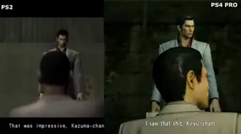 A comparison between the graphics of the original Yakuza (left) and Kiwami