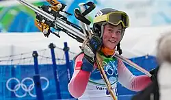 Yina Moe-Lange after her GS race at the Vancouver Olympics.