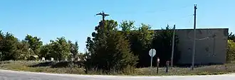 The original settler name for the location was Hog Back,[4][5] with a railway station first established there with that name in 1881.[6] This station was later moved[7] to Hog Back, Kansas. Hog Back was the local name for the high limestone and chalk ridge that runs from just west of old Fort Hays to Ellis. These bluffs are the local outcrop of the Fort Hays Limestone.[8] Established in 1906[9] by business partners Erasmus Haworth, the first state geologist of Kansas,[10] and I. M. Yost, leading businessman and miller of Hays,[11] Yocemento is one of the several communities around the outskirts of the High Plains that were founded to use Fort Hays Limestone to manufacture Portland cement.[12][13][14][15]