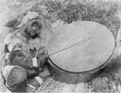 Formerly, social status was attained by successful hunters who could provide food and skins. Successful hunters were recognized as leaders by members of the social group.[25] Although there were no formally recognized leaders, informal leadership was practiced by or in the men who held the title Nukalpiaq ("man in his prime; successful hunter and good provider"). The nukalpiaq, or good provider, was a man of considerable importance in village life. This man was consulted in any affair of importance affecting the village in general, particularly in determining participation in the Kevgiq and Itruka'ar ceremonies.[24] He was said to be a major contributor to those ceremonies and provider to orphans and widows.[24]
