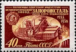 The 1958 post stamp "Pioneers of the Soviet Industry"