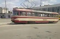 The Zaporizhzhia Tram is a tram network in the city of Zaporizhzhia, Ukraine. The network comprises 7 routes spanning 157.9 km of which 99.345 km are in use. The tram began operating on July 17, 1932. Service on the system has been interrupted but continued operating through the Russian Invasion of Ukraine 2022. The system carried 100,500 daily riders as of 2020.[1]