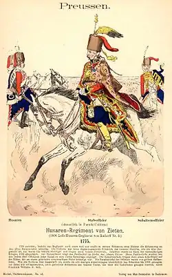 The Zieten Hussars,[nb 2] (German: Husaren-Regiment "von Zieten"), last designation: "Hussars Regiment 'von Zieten' (Brandenburg) No. 3" (Husaren-Regiment von Zieten (Brandenburgisches) Nr. 3), was a hussar regiment of the Prussian Army.[nb 3] founded in 1730 and named after its first Colonel, Hans Joachim von Zieten.